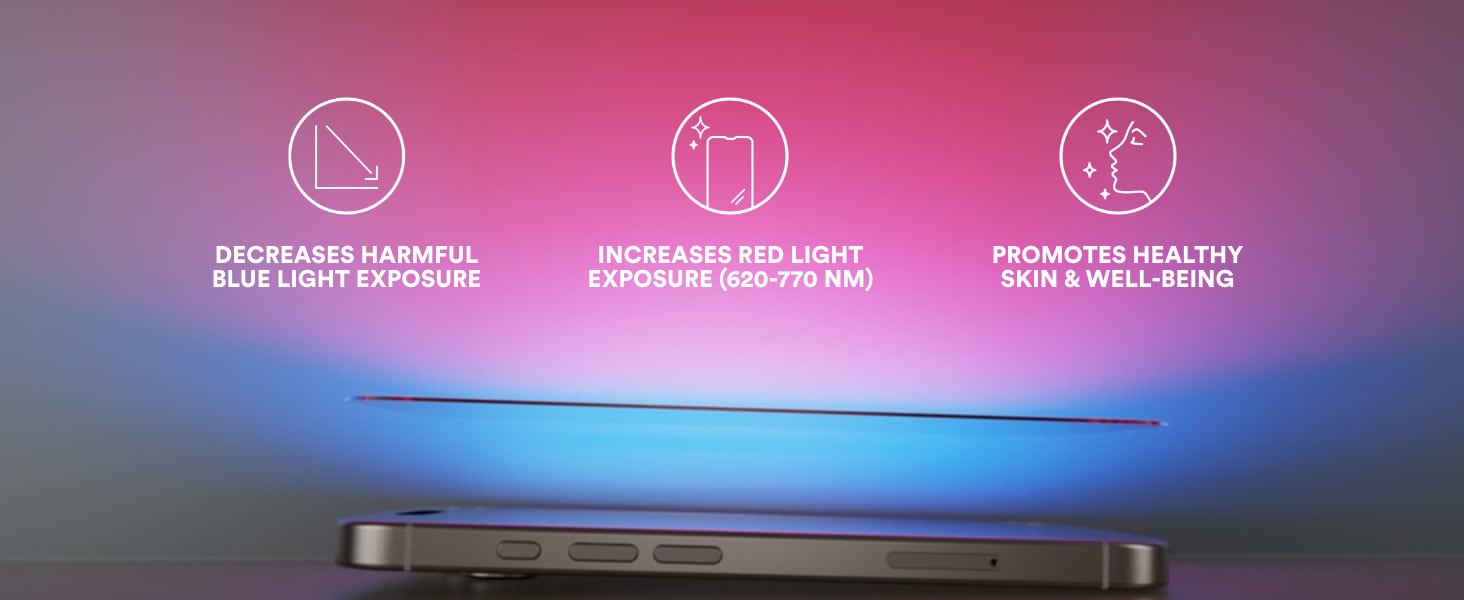 BodyGuardz Red Light Converter | ボディガーズ レッドライト コンバーターは、スマートフォンから発せられるお肌に悪影響を与えるブルーライトを、美容や健康にうれしいレッドライトに変えてくれる画期的なスクリーンプロテクターです。 毎日使うスマホだからこそ、肌のケアや睡眠の質をサポートして、内側から美しさと心地よさを引き出してくれます。